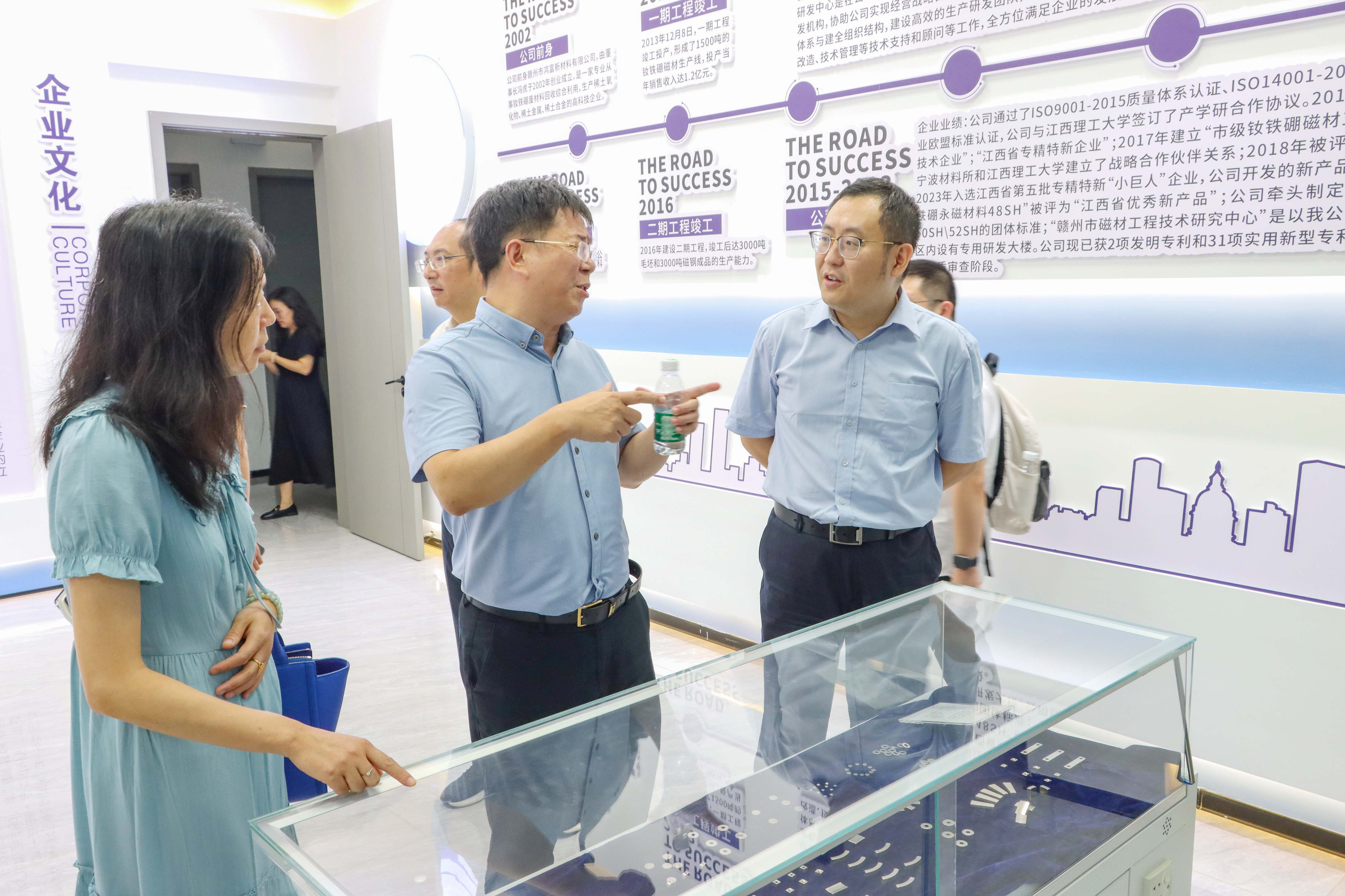 座談會后,為破解中小企業(yè)融資難題,王一塵一行還深入贛州發(fā)展集團旗下供應鏈公司投資的稀土產(chǎn)業(yè)重點項目 ——鉅磁科技公司進行實地調研。雙方聚焦“國企+金融機構”共建“金融倉”模式展開深度探討,積極響應監(jiān)管部門“支持銀行機構發(fā)展存貨擔保融資”的政策導向,計劃通過存貨質押、倉單融資、供應鏈金融等創(chuàng)新產(chǎn)品,依托國有倉儲的強監(jiān)管能力,有效推動金融機構“脫核”融資創(chuàng)新,為鏈上中小企業(yè)賦能,形成“產(chǎn)業(yè)+金融+技術”的協(xié)同閉環(huán),打通中小企業(yè)融資堵點,為地方特色產(chǎn)業(yè)集群發(fā)展提供全鏈條金融孵化服務,提升產(chǎn)業(yè)鏈整體價值和可持續(xù)發(fā)展,助力中小企業(yè)駛入發(fā)展快車道。