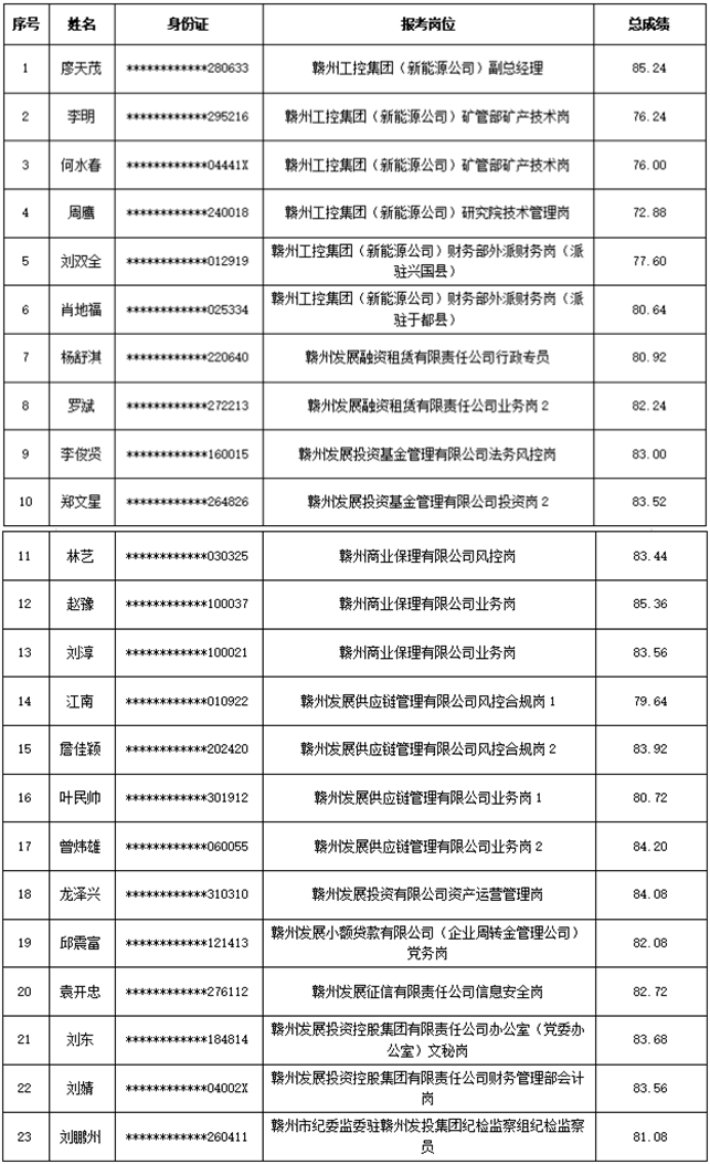 根據(jù)《贛州發(fā)展投資控股集團有限責任公司2025年公開招聘公告》,經(jīng)報名、資格審查、筆試/第一輪面試、第二輪面試等程序,現(xiàn)將入圍體檢、背景調(diào)查人員名單及有關(guān)事項公告如下: