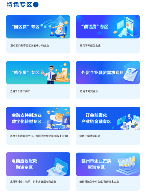 2.科技金融支持:針對(duì)科技信貸領(lǐng)域“看不懂、不敢貸”的顧慮,虔融信服平臺(tái)打造了集政策宣貫、銀企對(duì)接、貸款發(fā)放與監(jiān)測(cè)等功能于一體的“虔飛貸”專(zhuān)區(qū),積極共享涉企稅費(fèi)、水電繳納、公積金社保等數(shù)據(jù),協(xié)助銀行開(kāi)展信用評(píng)估、精準(zhǔn)畫(huà)像,降低銀企信息不對(duì)稱(chēng),助推“虔飛貸”模式增量擴(kuò)面,截至目前,“虔飛貸”投放超15.5億元,實(shí)現(xiàn)18個(gè)縣(市、區(qū))全覆蓋。
