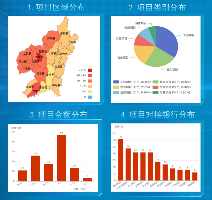 產(chǎn)融對(duì)接創(chuàng)新突破。在2025年第十一屆江西省金融機(jī)構(gòu)支持贛州市經(jīng)濟(jì)高質(zhì)量發(fā)展產(chǎn)融對(duì)接活動(dòng)中,首次通過(guò)數(shù)字科技為金融服務(wù)賦能,實(shí)現(xiàn)了產(chǎn)融對(duì)接項(xiàng)目數(shù)字可視化,為大會(huì)的順利召開(kāi)提供了堅(jiān)實(shí)的技術(shù)支撐與保障。集成動(dòng)態(tài)數(shù)據(jù)統(tǒng)計(jì)與可視化展示模塊,實(shí)現(xiàn)261個(gè)項(xiàng)目、559億元融資需求的線(xiàn)上實(shí)時(shí)查看;其中已簽約項(xiàng)目162個(gè),簽約金額388億元,推薦項(xiàng)目完成授信8.316億元,展現(xiàn)了國(guó)企在促進(jìn)產(chǎn)融結(jié)合中的樞紐作用。