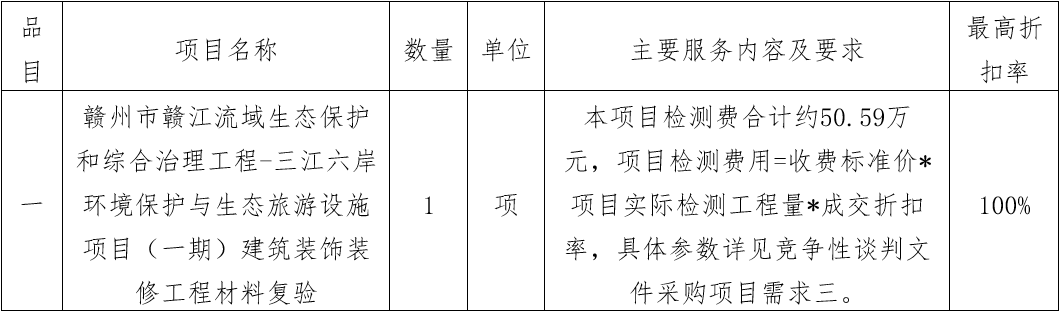 贛州市贛江流域生態(tài)保護和綜合治理工程-三江六岸環(huán)境保護與生態(tài)旅游設施項目(一期)建筑裝飾裝修工程材料復驗競爭性談判采購公告